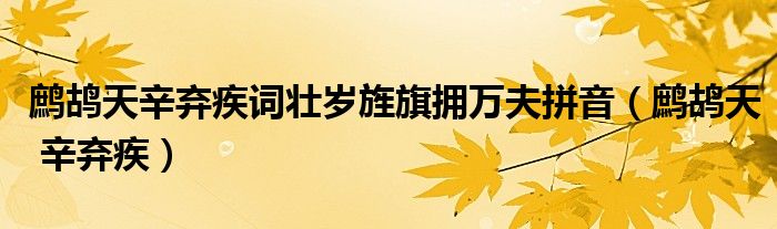 大家好,我是小跳,我来为大家解答以上问题。鹧鸪天辛弃疾词壮岁旌旗拥万夫拼音,鹧鸪天 辛弃疾很多人还不知道,现在让我们一起来看看吧!