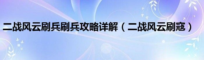 二战风云刷兵刷兵攻略详解(二战风云刷寇),有没有人理我啊?急死个人!