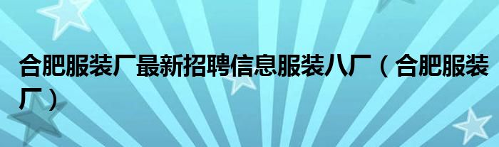 合肥服装厂最新招聘信息服装八厂(合肥服装厂),快急哭了,求给个思路吧!