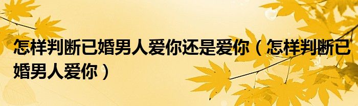 大家好,我是小跳,我来为大家解答以上问题。怎样判断已婚男人爱你还是爱你,怎样判断已婚男人爱你很多人还不知道,现在让我们一起来看看吧!