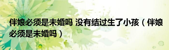 大家好,我是小跳,我来为大家解答以上问题。伴娘必须是未婚吗 没有结过生了小孩,伴娘必须是未婚吗很多人还不知道,现在让我们一起来看看吧!