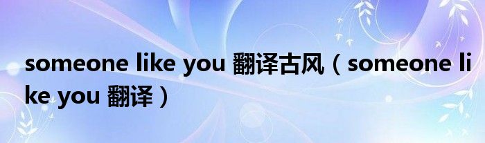 someone like you 翻译古风(someone like you 翻译),急!求解答,求不沉贴!