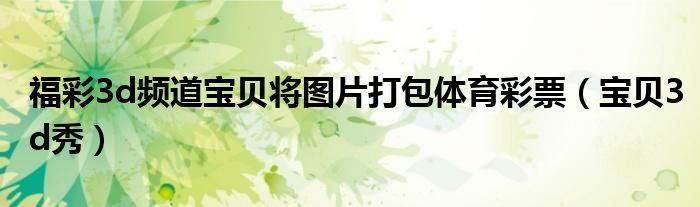 大家好,我是小跳,我来为大家解答以上问题。福彩3d频道宝贝将图片打包体育彩票,宝贝3d秀很多人还不知道,现在让我们一起来看看吧!