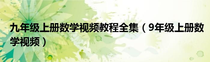 九年级上册数学视频教程全集(9年级上册数学视频),跪求好心人,别让我孤军奋战!