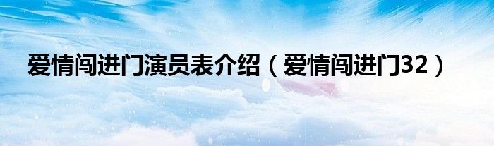 大家好,我是小跳,我来为大家解答以上问题。爱情闯进门演员表介绍,爱情闯进门32很多人还不知道,现在让我们一起来看看吧!