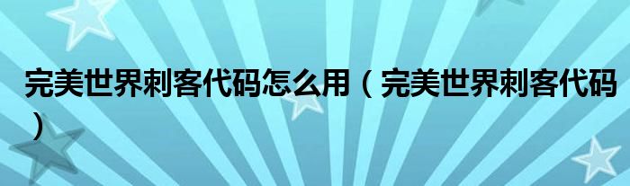 大家好,我是小跳,我来为大家解答以上问题。完美世界刺客代码怎么用,完美世界刺客代码很多人还不知道,现在让我们一起来看看吧!