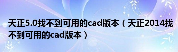 天正5.0找不到可用的cad版本(天正2014找不到可用的cad版本),有没有人理理我呀?急死啦!