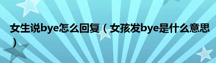 大家好,我是小跳,我来为大家解答以上问题。女生说bye怎么回复,女孩发bye是什么意思很多人还不知道,现在让我们一起来看看吧!