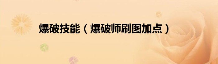 爆破技能(爆破师刷图加点),急到抓头发,求解答!