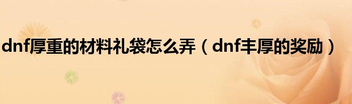 dnf厚重的材料礼袋怎么弄(dnf丰厚的奖励)急求答案,帮忙回答下