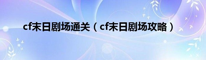 cf末日剧场通关(cf末日剧场攻略),求大佬施舍一个解决方案,感激不尽!