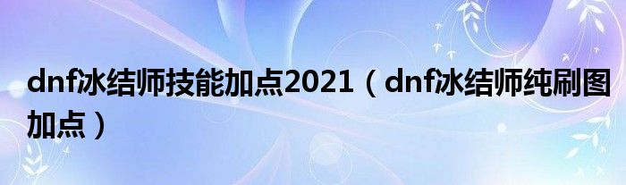 大家好,我是小跳,我来为大家解答以上问题。dnf冰结师技能加点2021,dnf冰结师纯刷图加点很多人还不知道,现在让我们一起来看看吧!