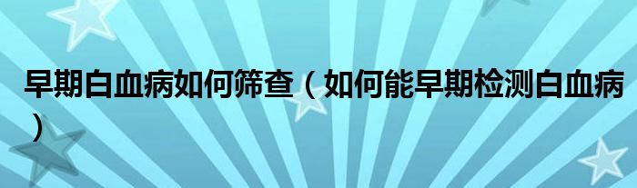 大家好,我是小跳,我来为大家解答以上问题。早期白血病如何筛查,如何能早期检测白血病很多人还不知道,现在让我们一起来看看吧!
