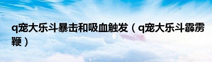q宠大乐斗暴击和吸血触发(q宠大乐斗霹雳鞭),跪求万能的网友,帮我破局!