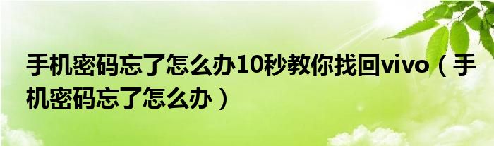 手机密码忘了怎么办10秒教你找回vivo(手机密码忘了怎么办)!时间紧迫,求快速解答!