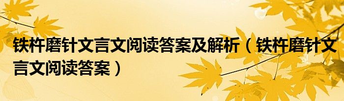 大家好,我是小跳,我来为大家解答以上问题。铁杵磨针文言文阅读答案及解析,铁杵磨针文言文阅读答案很多人还不知道,现在让我们一起来看看吧!