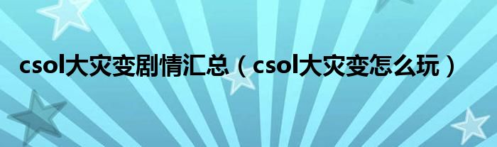 csol大灾变剧情汇总(csol大灾变怎么玩),跪求万能的知友,帮我看看!